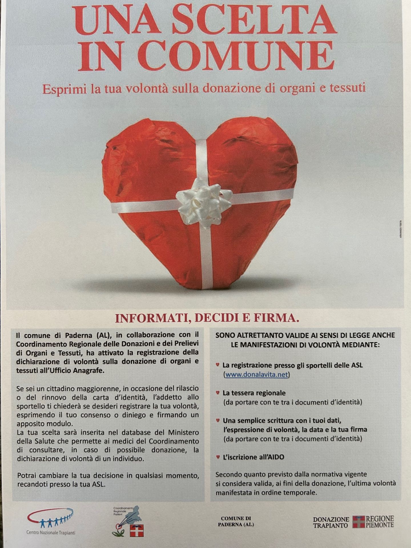 Dichiarazione di volontà alla donazione di organi e tessuti in occasione del rilascio della CIE